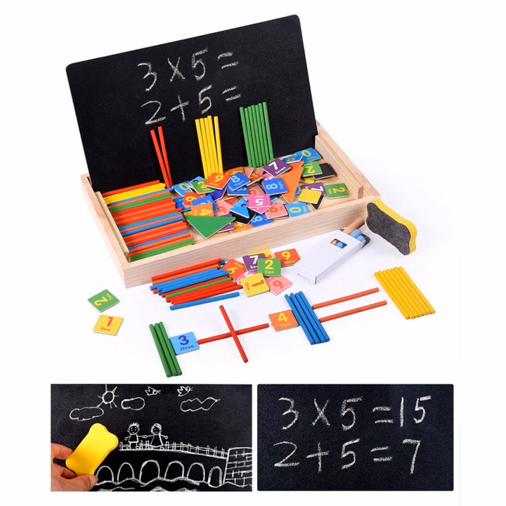 Đồ chơi trẻ em bảng gỗ học toán có que tính