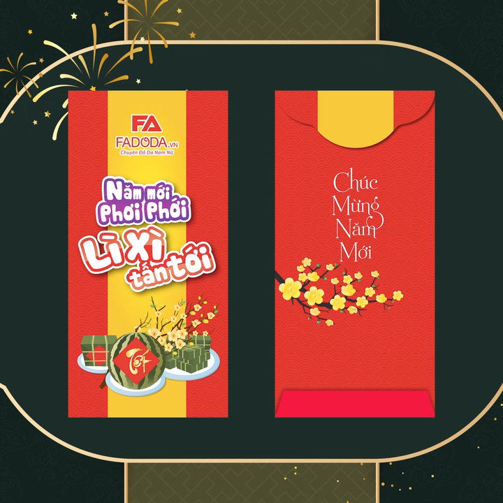 Nhằm tri ân quý khách hàng đã luôn đồng hành và ủng hộ Fadoda cũng như để đáp ứng thêm nhu cầu sử dụng thêm bao lì xì. Fadoda đã thiết kế và tạo ra một sản phẩm bao lì xì cao cấp với chất liệu đặc biệt tốt gấp 5 lần so với sản phẩm thông thương bên cạnh đó bề mặt bao lì xì được cán màn bóng giúp tăng độ sang trọng, độ bền và độ thấm nước giúp người dùng càng thêm hứng thú khi sở hữu loại chất liệu này