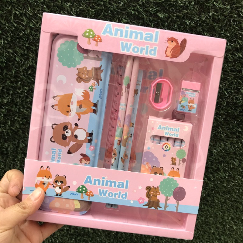[Quà Cho Bé] Bộ Dụng Cụ Học Tập Cho Bé, Hộp Đựng Đồ Dùng Học Tập 6 Món Hình – Bh Kids