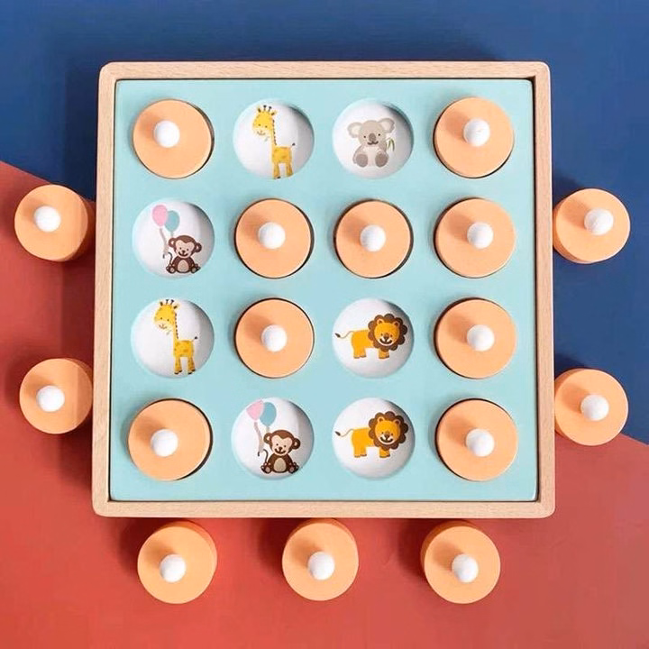 Bộ đồ chơi lật hình gỗ là một trong những sản phẩm giáo dục tuyệt vời giúp bé phát triển trí nhớ, tư duy logic và kỹ năng quan sát ngay từ nhỏ. Với thiết kế gồm các thẻ gỗ in hình ngộ nghĩnh cùng cách chơi thú vị, bé sẽ được rèn luyện khả năng ghi nhớ một cách tự nhiên thông qua việc tìm cặp hình giống nhau.