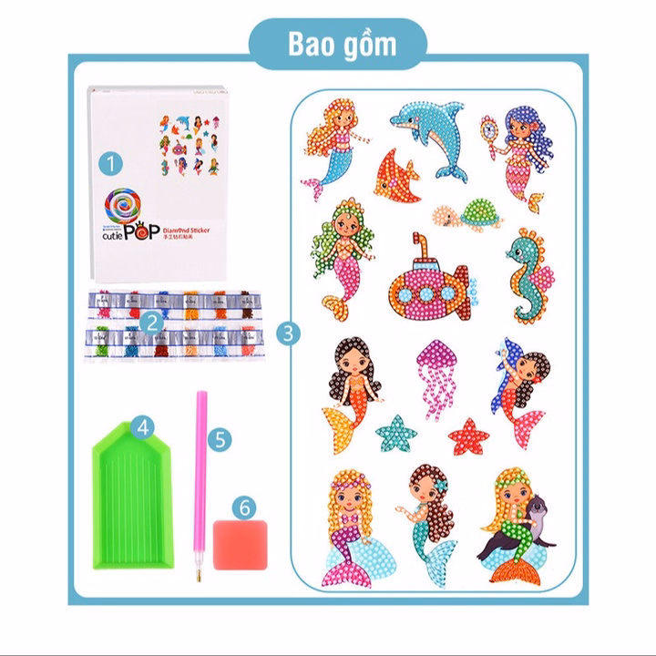 Sticker đính đá, tranh đính đá giúp bé rèn luyện tính kiên nhẫn tỉ mỉ và năng khiếu mỹ thuật, Sticker trang trí cốc, ví, cặp, dán tường hình công chúa, hoạt hình đáng yêu