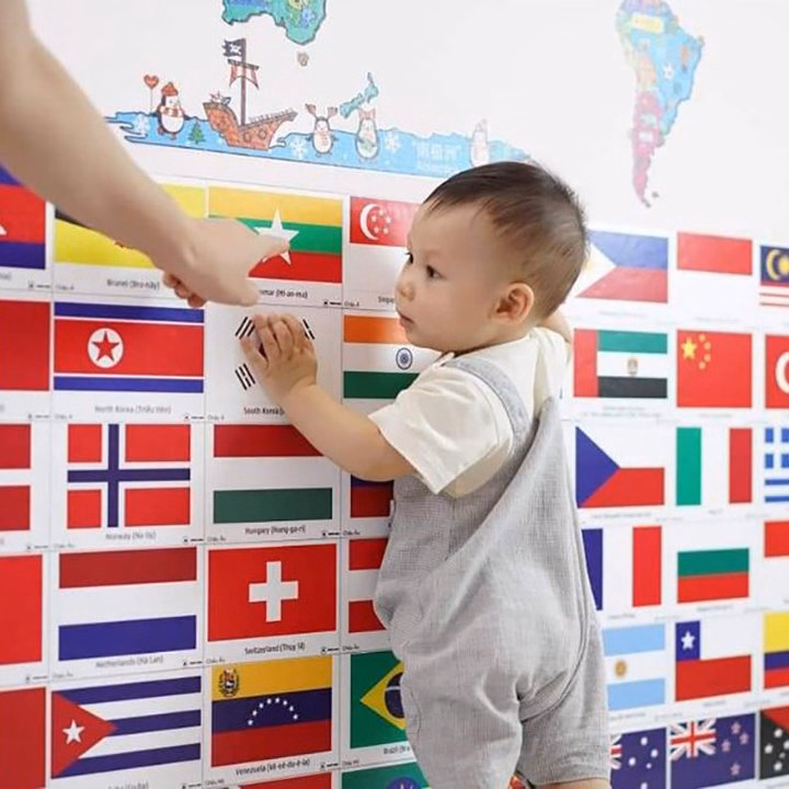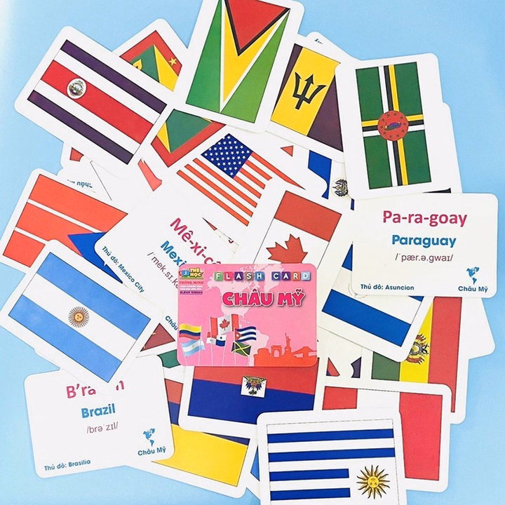 Bộ thẻ học Flash card cờ các nước được làm từ chất liệu giấy cao cấp, sản phẩm có xuất xứ từ Việt Nam rất an toàn cho bé