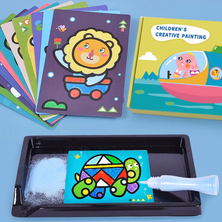 Tranh cát cho bé là loại tranh tô màu dành cho trẻ em, tuy nhiên thay vì sử dụng màu vẽ, các bé sẽ sử dụng các loại cát màu để tô điểm cho bức tranh. Với hình thức vẽ tranh này tạo nên sự thú vị khác lạ thu hút rất lớn