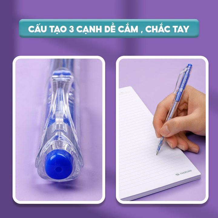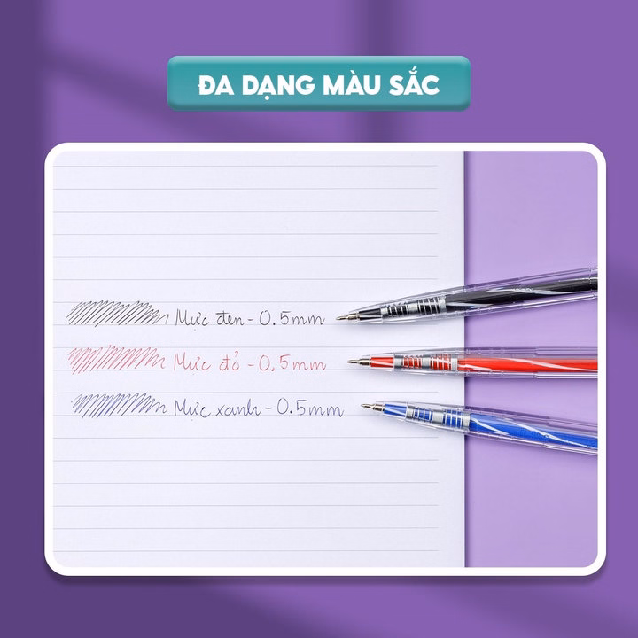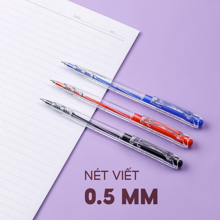 – Đầu bi 0.5mm, viết trơn êm, màu mực đậm tươi, mực ra đều và liên tục.
