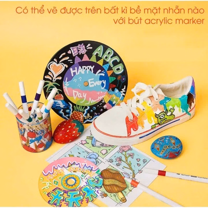 – Đa dụng: Bút Màu Acrylic Marker Cao Cấp – Bút Lông Màu có thể được sử dụng trên nhiều bề mặt khác nhau, bao gồm giấy, vải, gỗ, nhựa và kim loại. Điều này giúp bạn tự do khám phá và sáng tạo trên các loại chất liệu khác nhau.