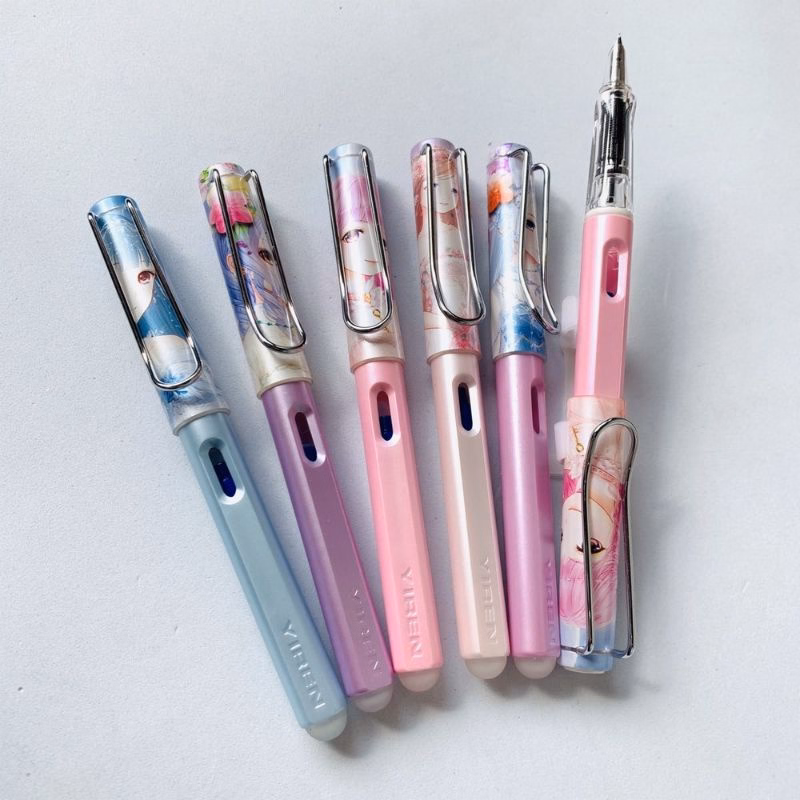 Bút máy, bút mực xóa được hình siêu nhân, công chúa dành cho học sinh Tiểu học. Nếu lắp mực xóa được, viết sai xóa ngay. Nếu bơm hút mực, bút sẽ lại là chiếc bút máy bình thường.