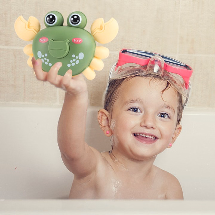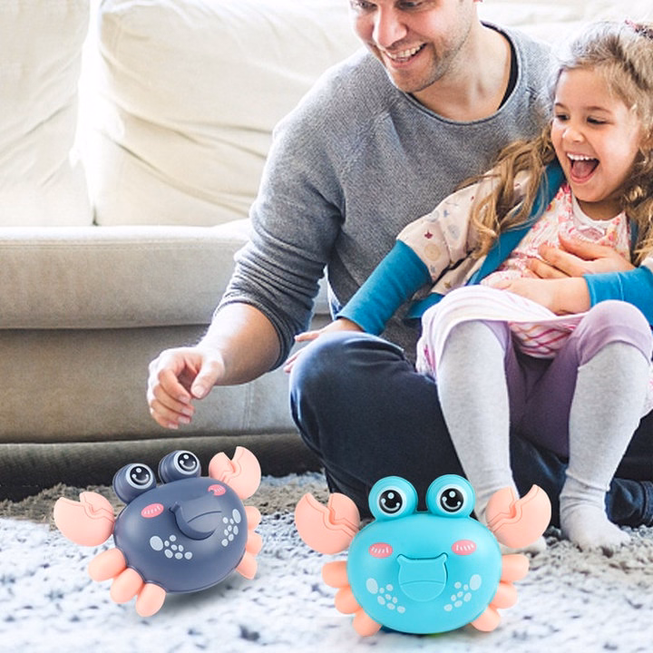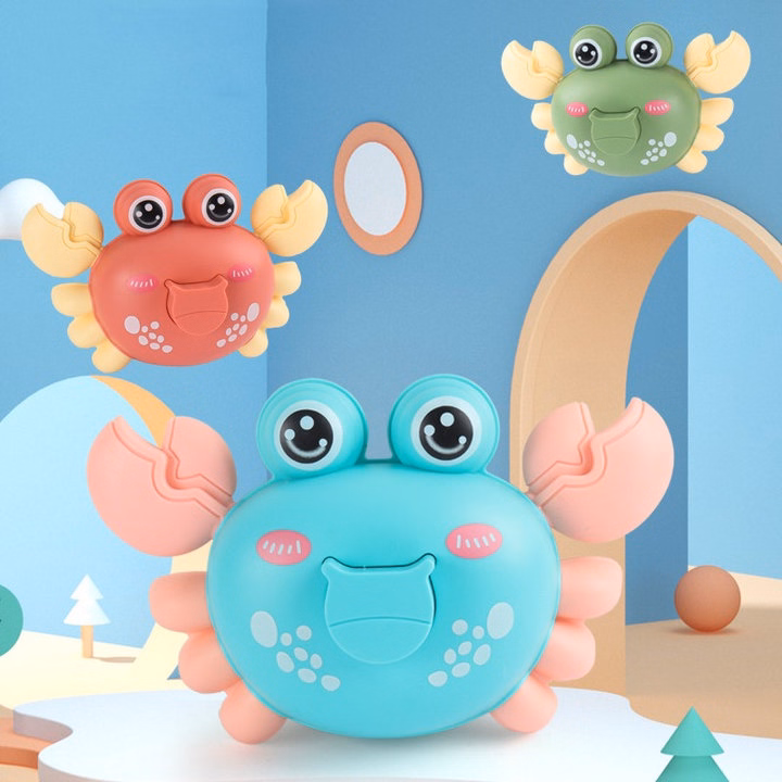 Chỉ cần ấn vào nút ở lưng để lên dây cót sau đó thả tay ra đồ chơi trẻ em con cua sẽ chạy