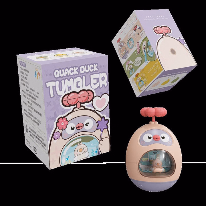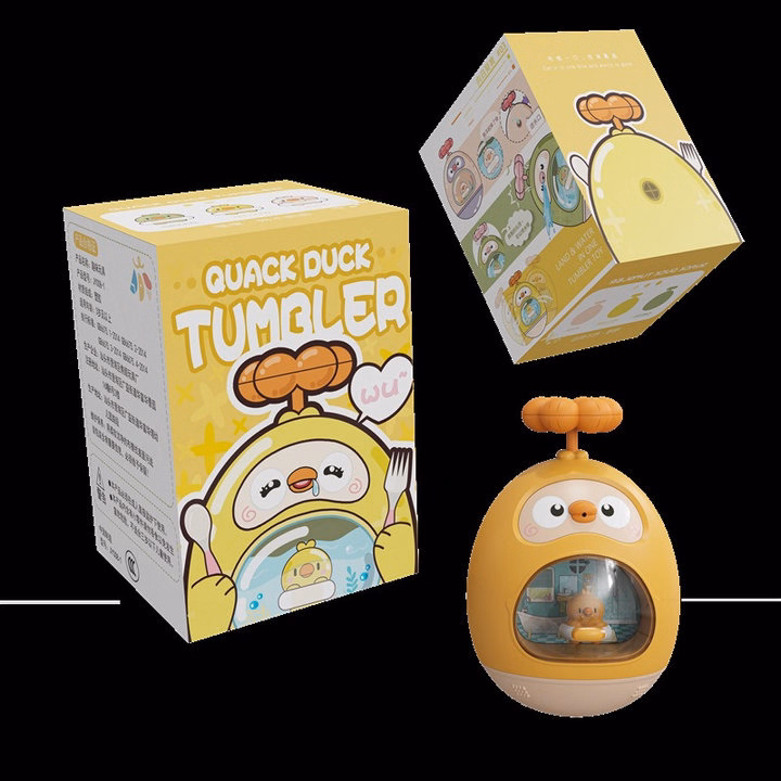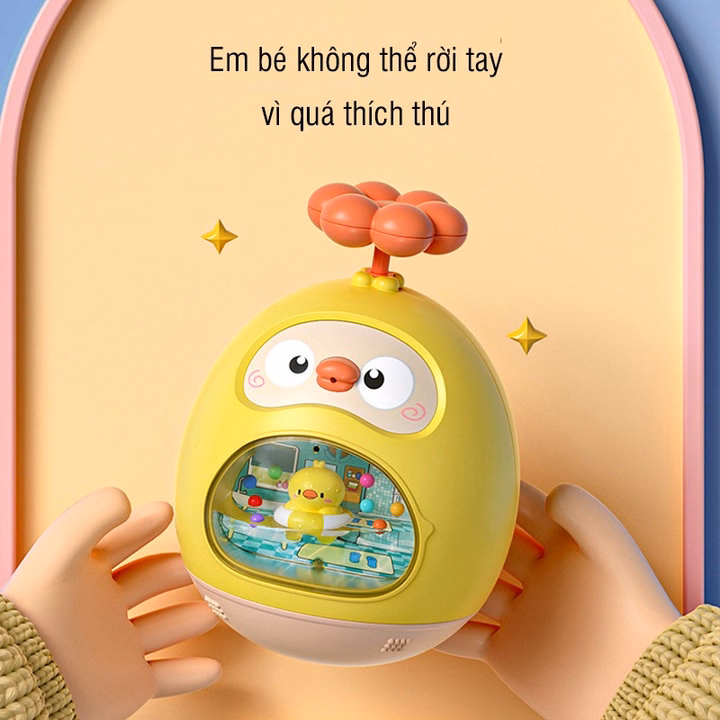 – Có hình vịt dễ thương trong bụng con lật đật kèm theo những hạt lục lạc, phát ra âm thanh leng keng vui tai