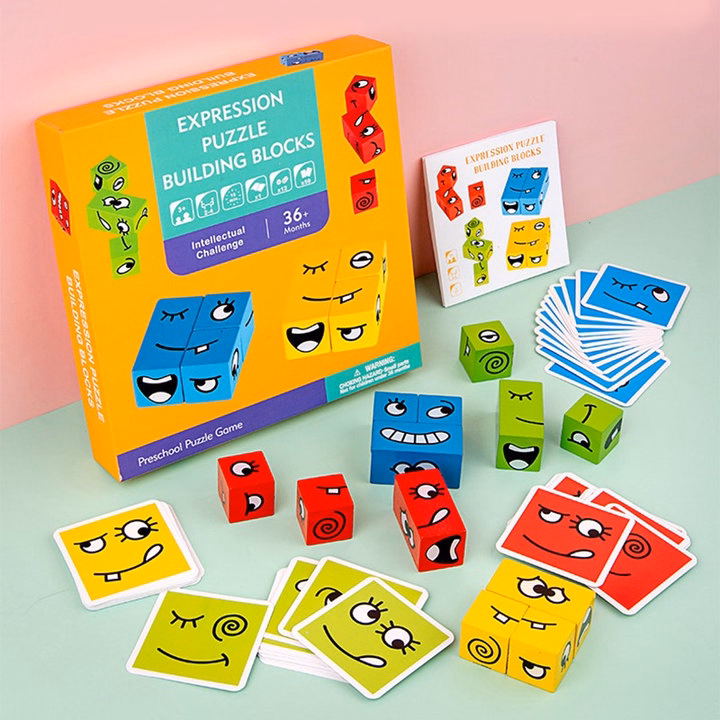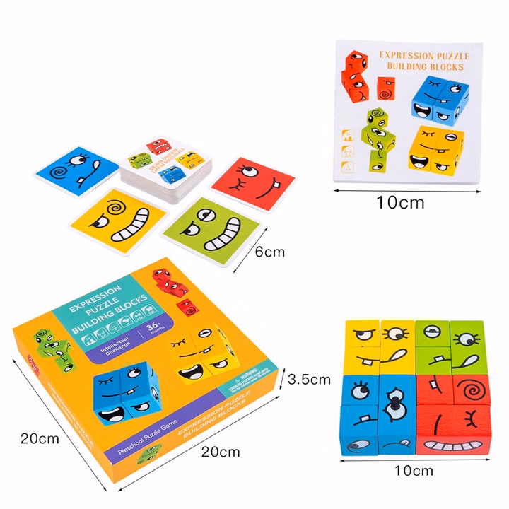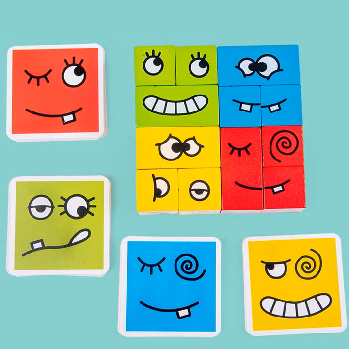 Bộ đồ chơi trẻ em Rubik thay đổi cảm xúc khuôn mặt – Trò chơi rèn luyện sự nhanh tay nhanh mắt cho bé. Sản phẩm với chất liệu gỗ tự nhiên sử dụng sơn màu hữu cơ nên rất an toàn cho bé