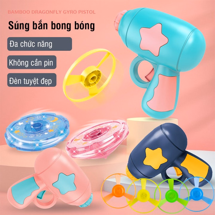 Súng bắn chong chóng có đèn là món đồ chơi trẻ em đa năng giúp tăng cường vận động và vui chơi đội nhóm ở trẻ em. Với món đồ chơi này các em có thể chạy nhảy liên tục kết hợp chơi chung với nhau cực kỳ vui vẻ
