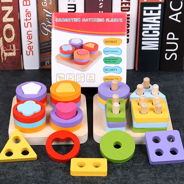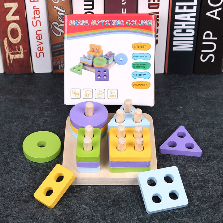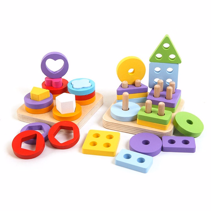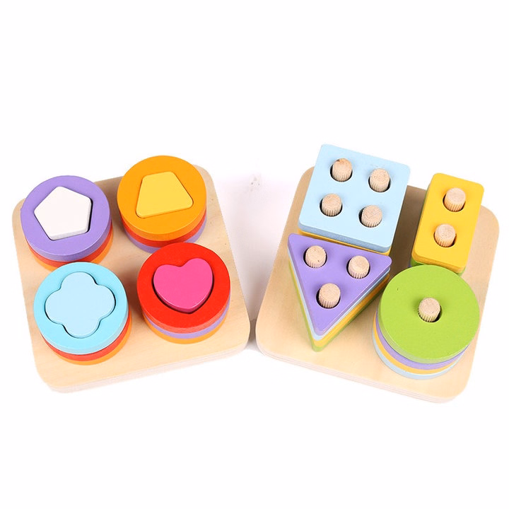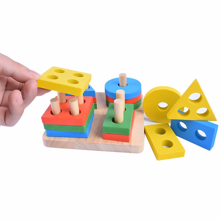 – Bộ đồ chơi xếp hình 4 cọc bằng gỗ giúp bé linh hoạt xử lí giữa tay , mắt và bộ não nhờ các trở ngại trên mỗi trụ cột.