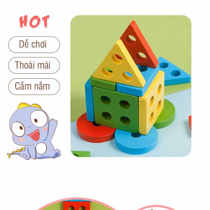 – Bộ xếp hình làm bằng gỗ tự nhiên kiểu dáng đẹp được phủ lớp sơn cao cấp an toàn cho các bé.