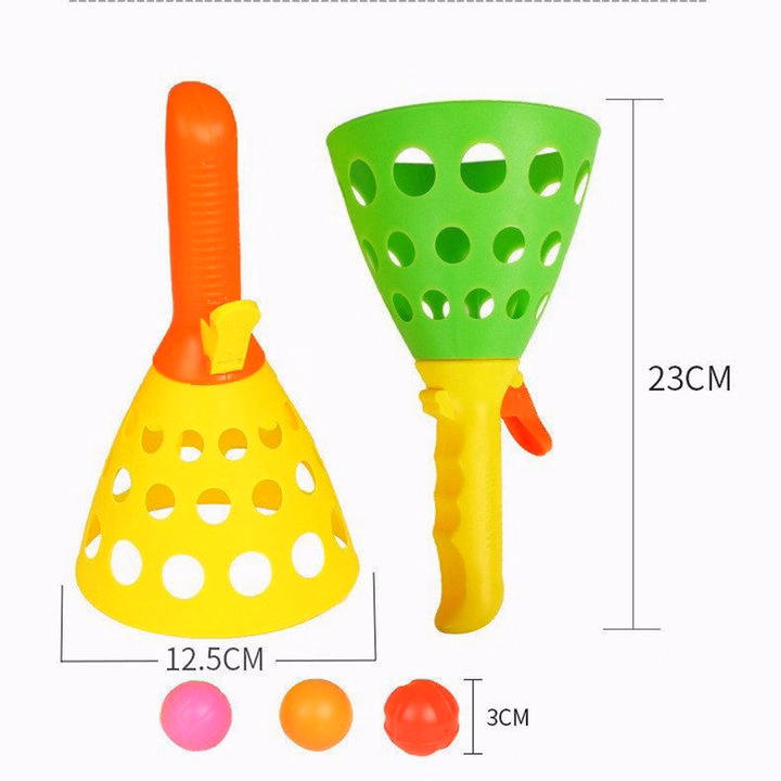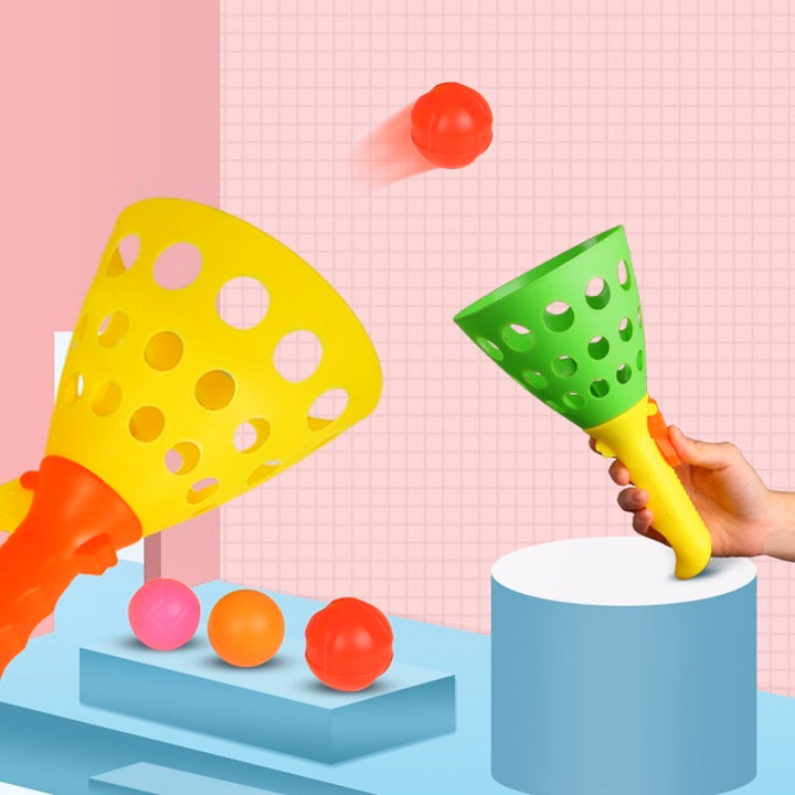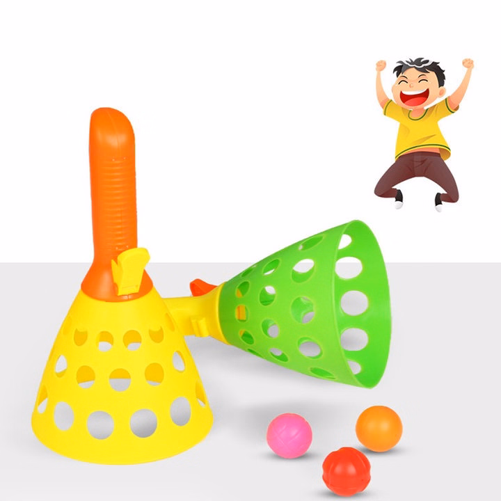 Bộ Đồ chơi tung hứng bóng với 2 cốc có tay cầm, có nút để khi bé bấm vào thì bóng sẽ được tung lên, bé có thể chơi 1 mình hoặc chơi cùng bạn, cùng người thân