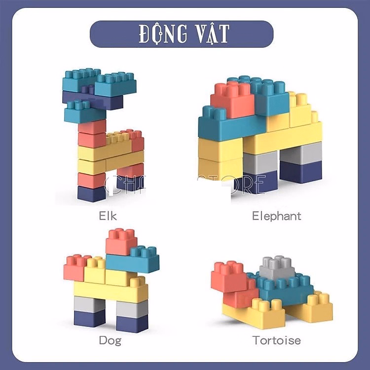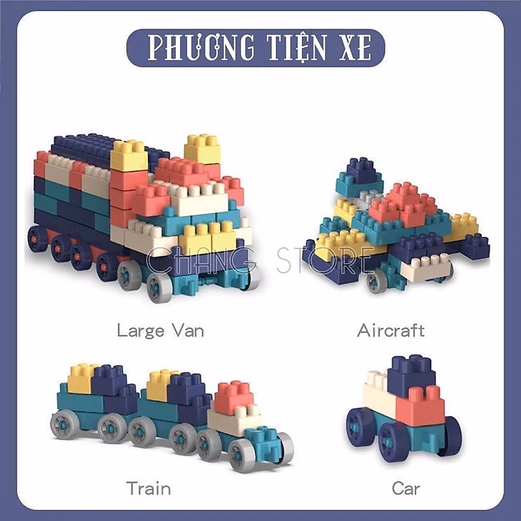 Mỗi bộ có 1 tờ hướng dẫn lắp ghép và có một hộp đựng có quai xách để bé cất gọn gàng tránh mất mát sau khi chơi và tiện mang đi mọi nơi.