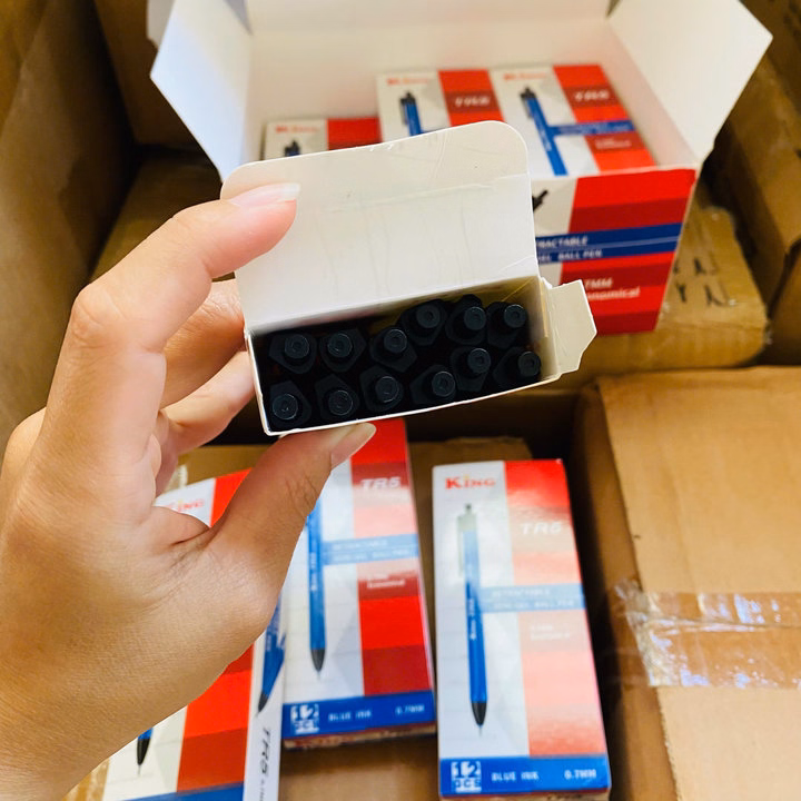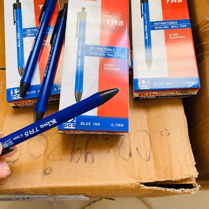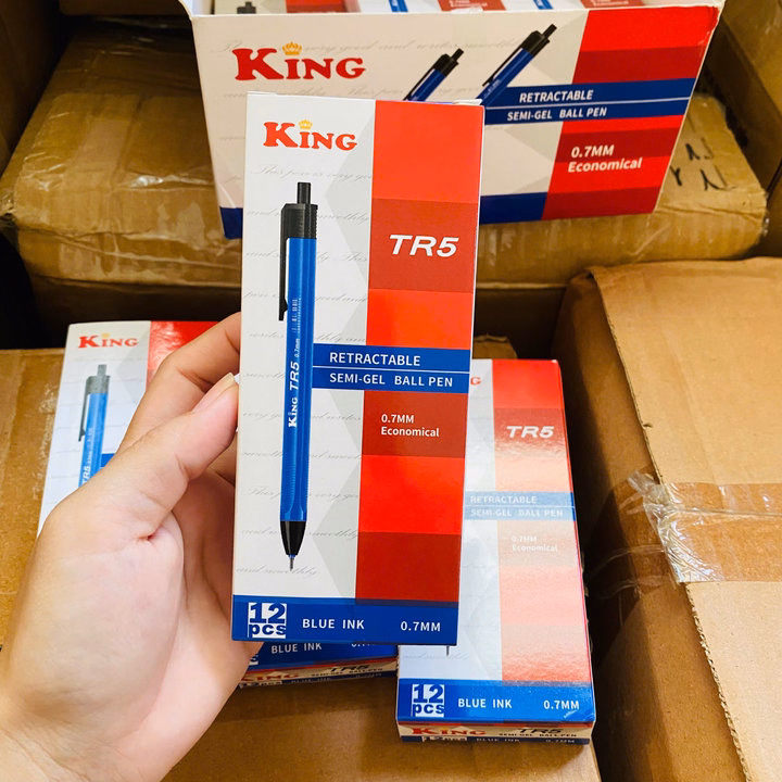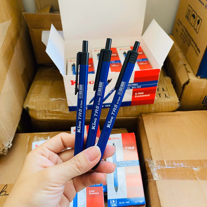 Hộp 12 Cây Bút Bi Bấm King Tr5 Ngòi 0.7mm Mực Xanh Cho Nét Lớn, Đậm, Đều Mực, Viết Êm, Trơn