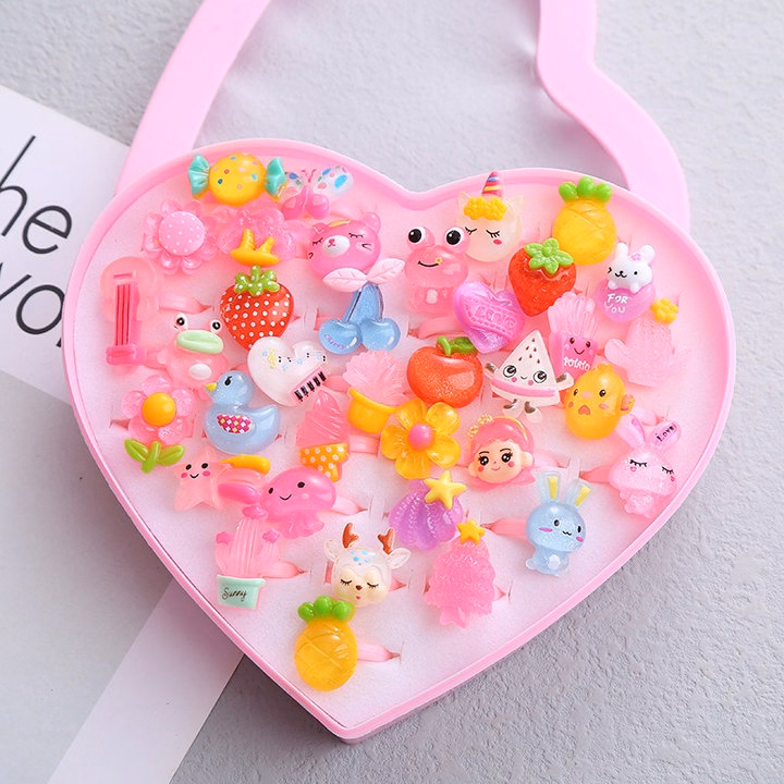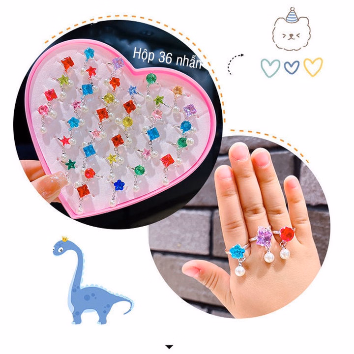 Hộp 36 nhẫn nhựa đồ chơi cho bé là một loại phụ kiện làm đẹp không thể thiếu cho các bé, những chiếc nhẫn nhựa xinh xắn với đủ mọi kiểu dáng màu sắc rất được yêu thích bởi các bé gái
