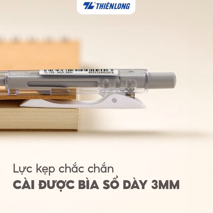– Lực kẹp giắt chắc chắn, có thể cài được sổ bìa dày 3 mm.