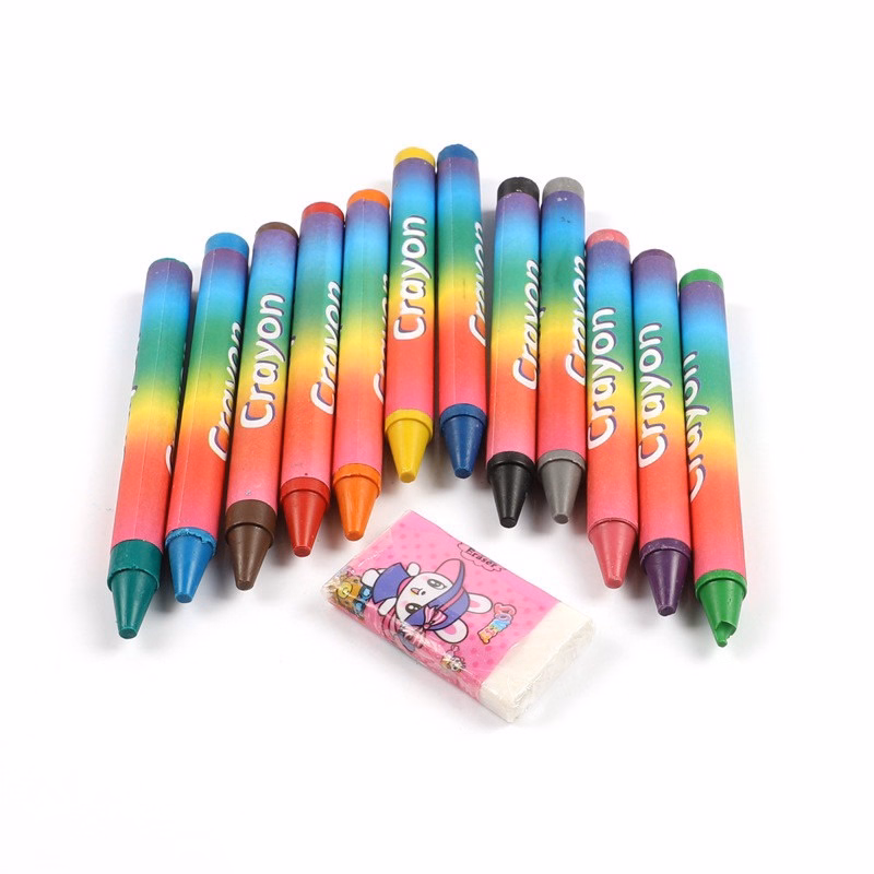 Bộ sản phẩm gồm: 6 bút lông màu, 12 bút chì màu, 12 bút chì sáp, 12 màu nén, 1 cục tẩy, 1 gọt bút chì, 1 bút lông vẽ, 1 keo dán.