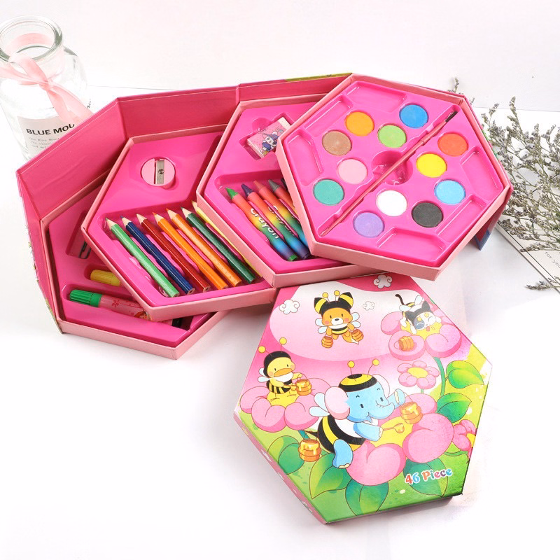 Tên sản phẩm: Hộp màu 4 tầng bao gồm 46 món xoay ngộ nghĩnh cho bé