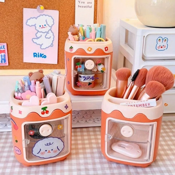 Hộp đựng bút – Hộp đựng đồ make không chỉ dành riêng cho bút viết mà còn có thể chứa các dụng cụ trang điểm nhỏ như cọ, son, mascara, hay những vật dụng nhỏ khác. Thiết kế nhỏ gọn giúp bạn tiết kiệm không gian và dễ dàng di chuyển.