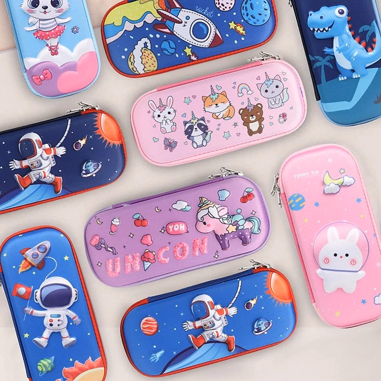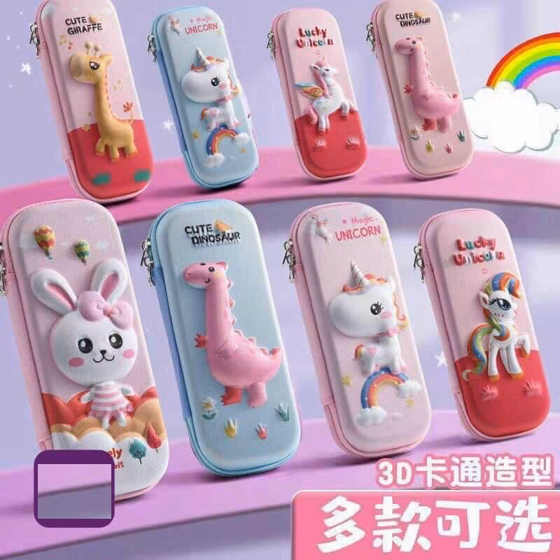 Hộp bút cho bé, hộp đựng bút 3D in nổi kéo khoá đi học cho bé siêu cute dễ thương