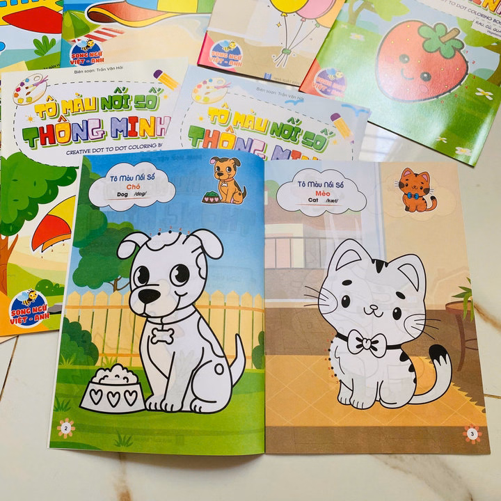 ❖ Bộ tô màu nối số thông minh giúp bé học thêm các từ vựng với nhiều chủ đề theo tiếng việt và tiếng anh. Bé mở rộng vốn từ vựng, phát triển ngôn ngữ